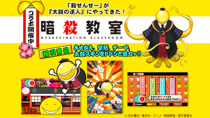 【太鼓の達人】スマートフォン版「太鼓の達人」に殺せんせー登場!Natsuki Jo2022年3月19日読了時間: 1分更新日:2024年6月20日ゲーム: #太鼓の達人カテゴリ: #コラボタイミング: #キャンペーン実施年月: #2015年 #1月参考サイト概要第一弾イベント期間中、ゲーム内に「殺せんせー」の着せ替えが登場。「暗殺教室」仕様のアプリ内壁紙、スマホ壁紙、太鼓スキンがアプリ内の福引にて獲得できる。第二弾では第一弾の内容に加え、スゴ得コンテンツ「太鼓の達人★新曲取り放題!」、au スマートパス「太鼓の達人★新曲取り放題!」において『暗殺教室』アニメオープニング・テーマ『青春サツバツ論』の配信を開始し、暗殺教室の楽曲でプレイできるようになった。
